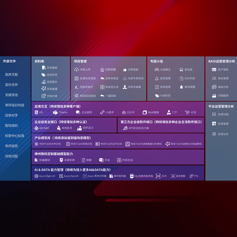医疗器械产品上市前,,,,要熟悉严格与繁复评审标准,,,,整理分析监管机构指导文件中的海量信息。。。。企业急需一个智能化解决方案,,,提升知识管理效率,,提高评审通过率,,,,以提升其市场竞争力。。。