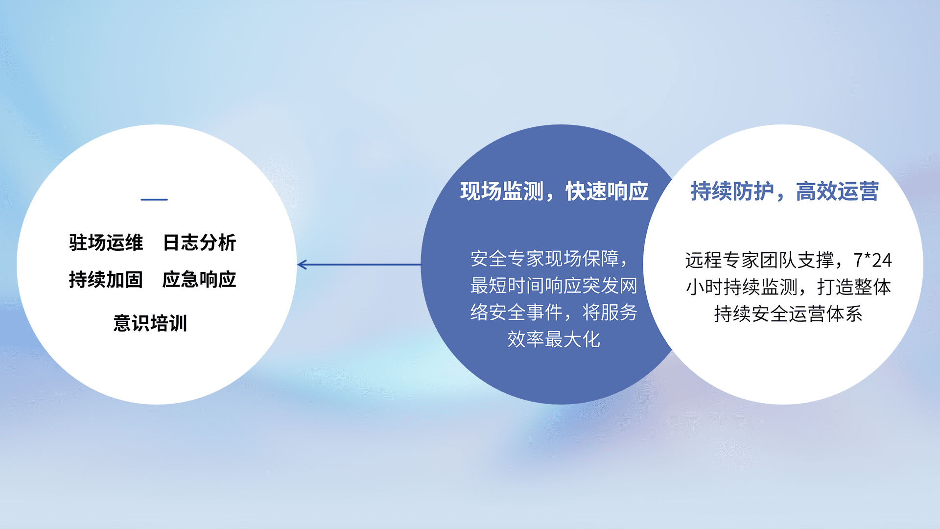 针对客户行业特性,,提供专属的一站式安全管理服务,,,帮助客户全面感知网络空间威胁,,通过安全专家的线上、、、线下防护支持,,实现风险闭环,,,,将安全保障常态化,,为客户打造常态化安全运维运营服务。。。